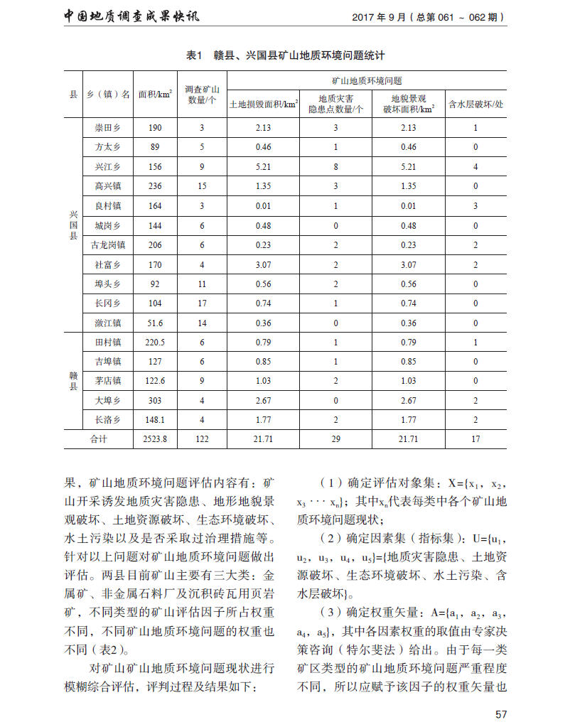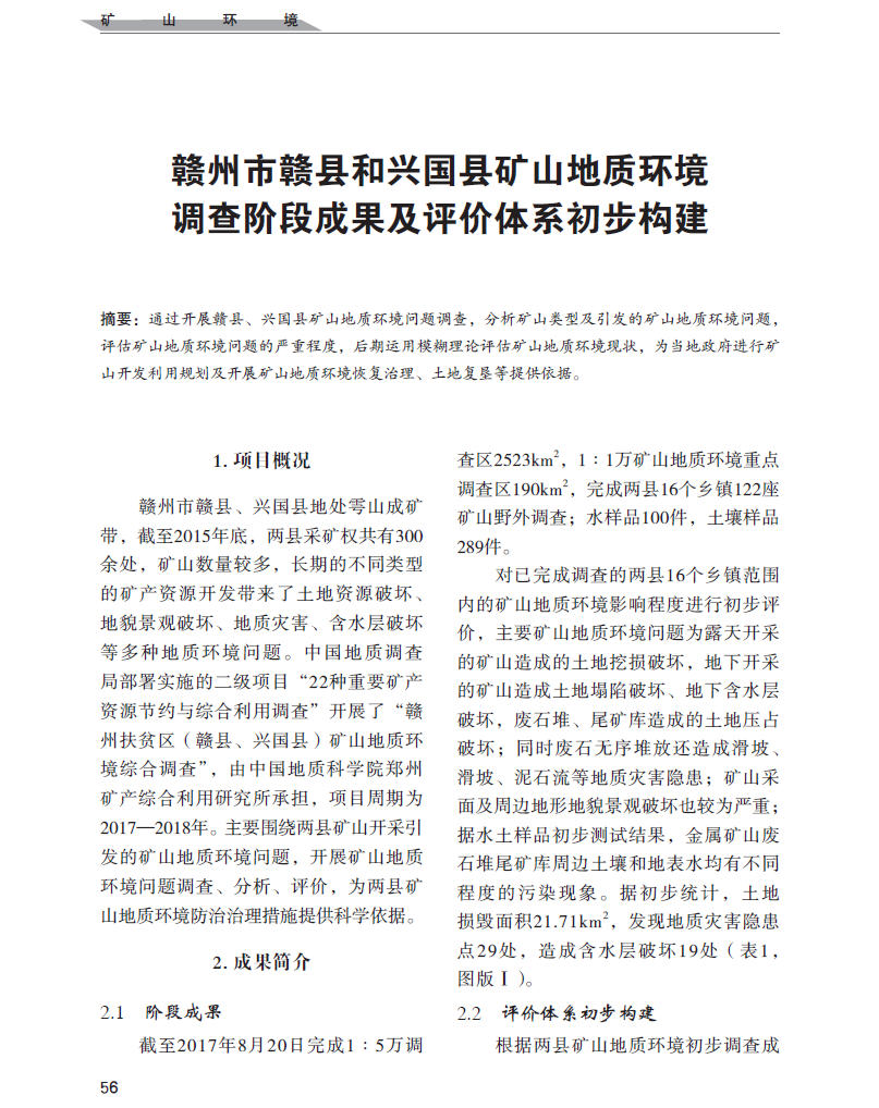 赣州市赣县和兴国县矿山地质环境调查阶段成果及评价体系初步构建