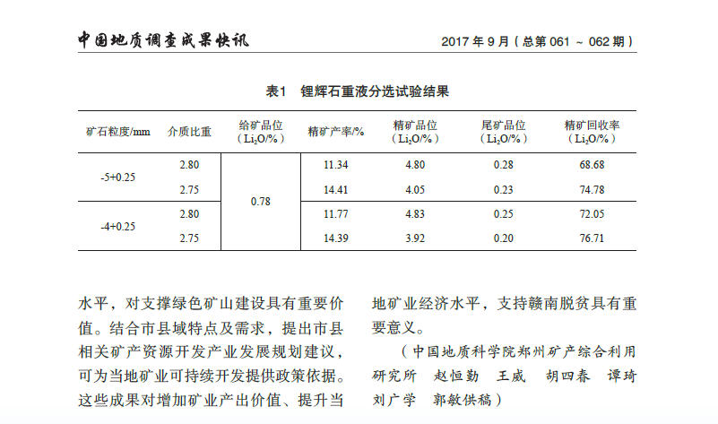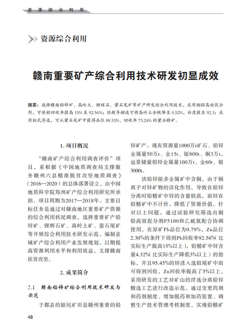 赣南重要矿产综合利用技术研发初显成效