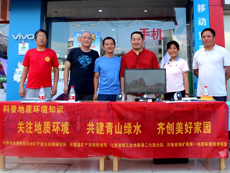 7月8日,围绕“珍惜矿产资源,爱护生态环境”的主题,中国地质调查局郑州矿产综合利用研究所、兴国县矿产资源管理局、江西省核工业地质局二六四大队和河南省地矿局第一地质环境调查院在兴国县联合举办“科普入社区—关注地质环境,共建青山绿水,齐创美好家园”活动。