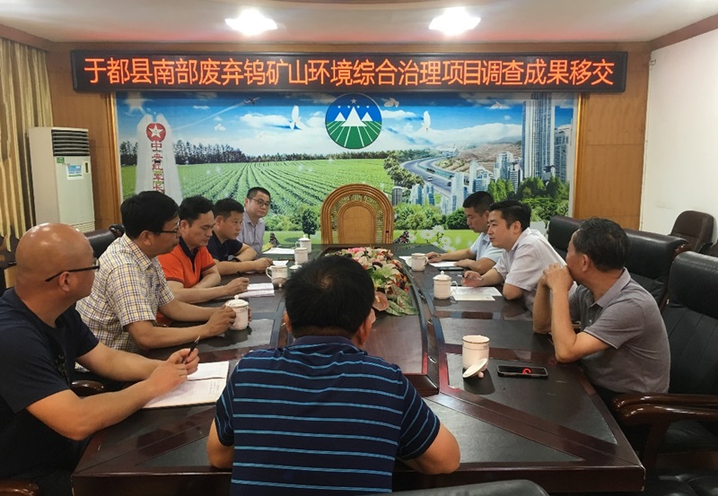 2020年6月23日,中国地质调查局郑州矿产综合利用研究所在赣州市于都县自然资源局就服务于都矿产资源绿色利用、矿山环境恢复治理举行了交流座谈会,并将“江西于都地区钨等矿产绿色利用调查评价”项目一年多来在矿山地质环境调查中所取得的3项调查成果进行了移交。