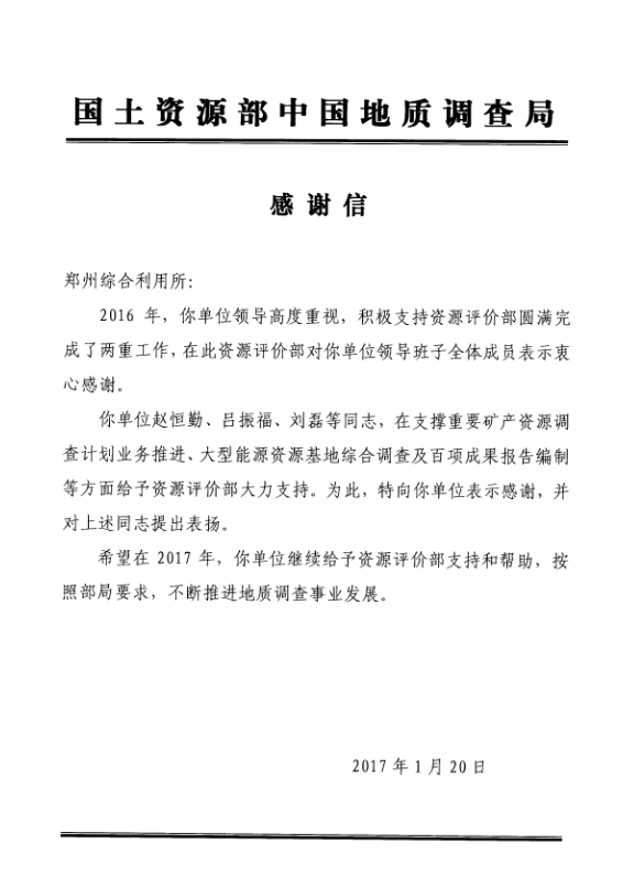 中国地质调查局关于表扬中国地质调查 科技创新大会...