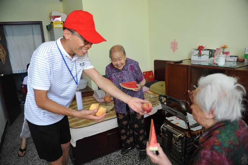 志愿者服务队一行8人来到敬老院,了解了老人的生活和身体情况,为老人们送去了牛奶、蛋糕、西瓜等慰问品,并帮助敬老院工作人员搬运了瓜果、蔬菜等。在敬老院娄院长的带领下,志愿者把切好的西瓜、蛋糕等食品送到了每一个房间每一位老人手里,并与他们聊天、谈心。老人们对于志愿者的到来感到十分开心,活动期间,敬老院里到处是欢声笑语。