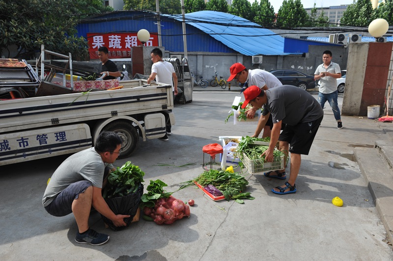 志愿者搬运蔬菜