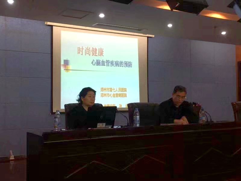 郑州市第七人民医院心血管内科病区主任孙运、神经内科主任董俊兴和药学部主任谢悦旭分别就心脑血管疾病的预防及急救、合理用药等内容进行了专题知识讲座。随后,专家团队为离退休人员进行了义诊,同多位进行过冠心病介入手术和心脏起搏器置入术的退休人员预约了复诊时间,并赠送了相关宣传资料。
