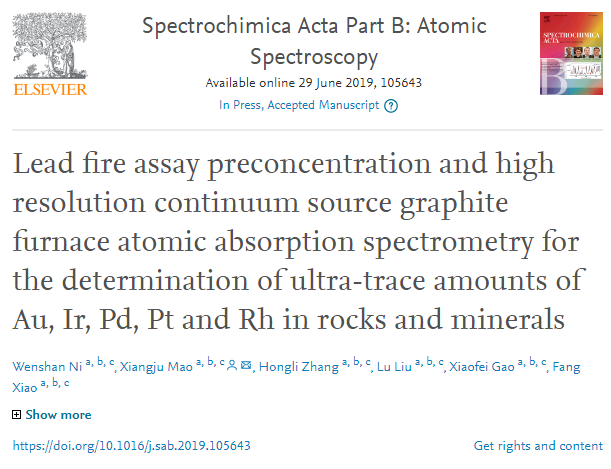 郑州综合利用所贵金属分析科研成果被国际权威光谱期刊《Spectrochimica Acta Part B: Atomic Spectroscopy》收录