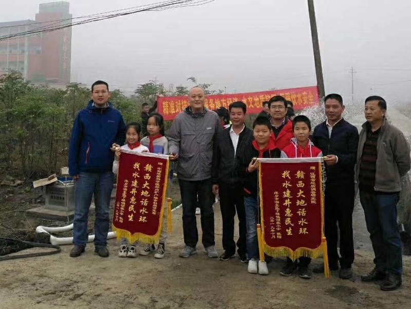 项目结合当地政府实际需求,通过物探、钻探等工作手段,部署实施了水文地质钻孔。日前,在腊市小学、胡家坊小学成功实施探采结合井2口,其中胡家坊小学水文地质钻孔日涌水量530m3/d,解决了当地师生约1600人的生活用水问题,旱季宜可保障附近村民的生活用水问题,有效服务地方水资源管理。胡家坊小学师生送来了“赣西大地话水环、找水建井惠民生”的感谢锦旗。
