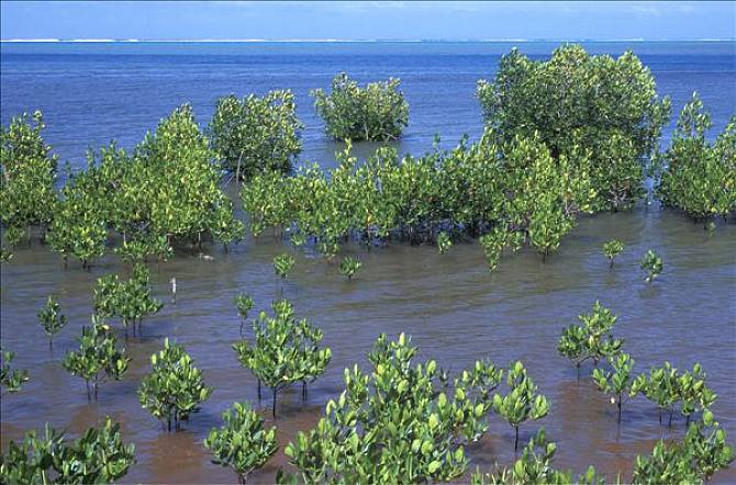 红树林盘根错节的发达根系能在海水中生长,能有效地滞留陆地来沙,减少近海岸海域的含沙量;在抵御风浪、固岸护堤、净化海水、调节气候、提供食物、维持生物多样性等方面发挥着巨大的作用,享有“海岸卫士”、“海洋绿肺”等美誉。单位面积的红树林生态系统所吸收和储存的碳是陆地热带雨林生态系统的五倍,这一作用对缓减全球气候变化极为重要。然而,在人类活动的影响下,全世界范围内的红树林的面积正以年均1%的速度减少,同时还面临着生物多样性降低、生态系统服务功能退化等严重威胁。