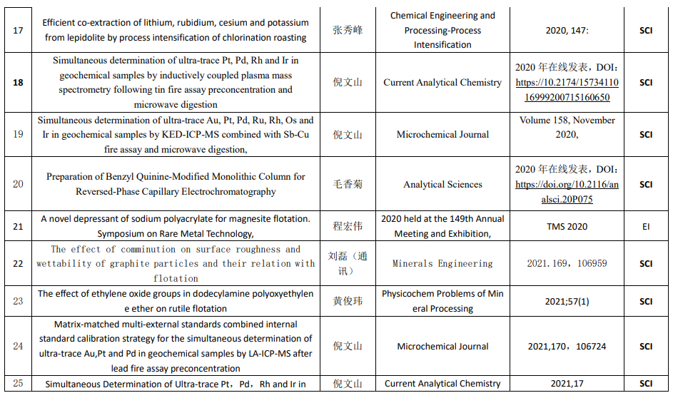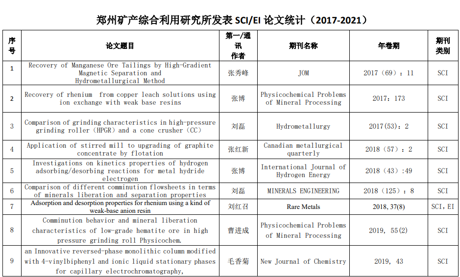 郑州矿产综合利用研究所发表SCI/EI论文统计(2017-2021)