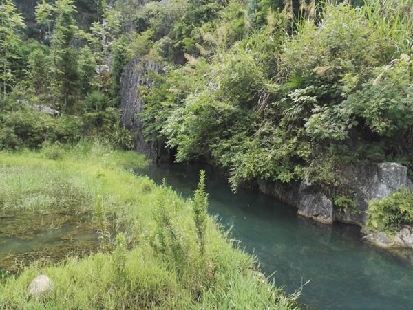 洞口南东方向有一地下河从山体中流出,向导介绍说该河水常年不干枯。