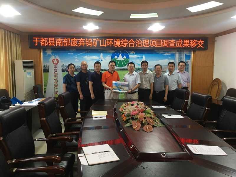 2020年6月23日,中国地质调查局郑州矿产综合利用研究所在赣州市于都县自然资源局就服务于都矿产资源绿色利用、矿山环境恢复治理举行了交流座谈会,并将“江西于都地区钨等矿产绿色利用调查评价”项目一年多来在矿山地质环境调查中所取得的3项调查成果进行了移交。