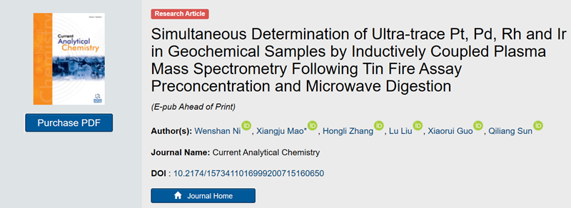 日前,自然资源部中国地质调查局郑州矿产综合利用研究所检测中心在锡试金分离富集地球化学样品中痕量、超痕量铂、钯、铑、铱方面取得新的突破。郑州综合利用所贵金属分析团队创造性的采用Sn粉代替SnO2作为铂族元素捕集剂,运用锡试金方法富集地球化学样品中Pt、Pd、Rh和Ir。以Sn粉做为捕集剂,可以将样品熔解温度由1250℃降低到1050℃,大大降低了能耗;Sn粉中铂族元素空白值极低,无需繁琐耗时的提纯步骤;相比含Pb、含Ni捕集剂,Sn粉无毒,避免了有毒试剂对实验人员和环境造成的危害。该项研究成果发表在SCI期刊《Current Analytical Chemistry》上。
